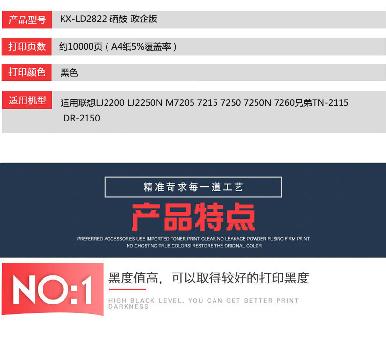 凱欣政企版 KX-LD2822 硒鼓 適用聯(lián)想LJ2200 LJ2250N M7205 7215 7250 7250N 7260兄弟TN-2115 DR-2150 全國統(tǒng)一價:150元