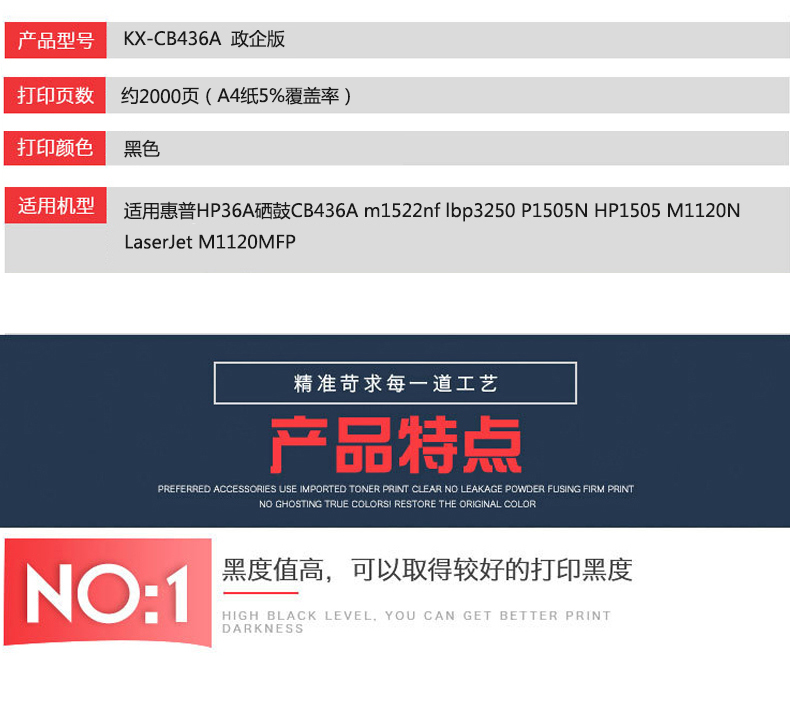 凱欣政企版 KX-CB436A 硒鼓 適用惠普HP36A CB436A m1522nf墨盒佳能lbp3250 P1505N HP1505打印機(jī) 全國(guó)統(tǒng)一價(jià):130元
