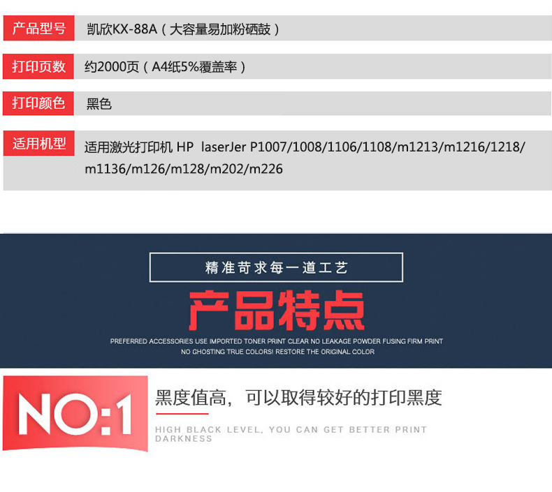 凱欣政企版 KX-CC388A 硒鼓 適用惠普m1136 CC388A HP1108 p1106 1007 p1008 388a m1213nf 1216nfh墨盒 全國統(tǒng)一價:126元