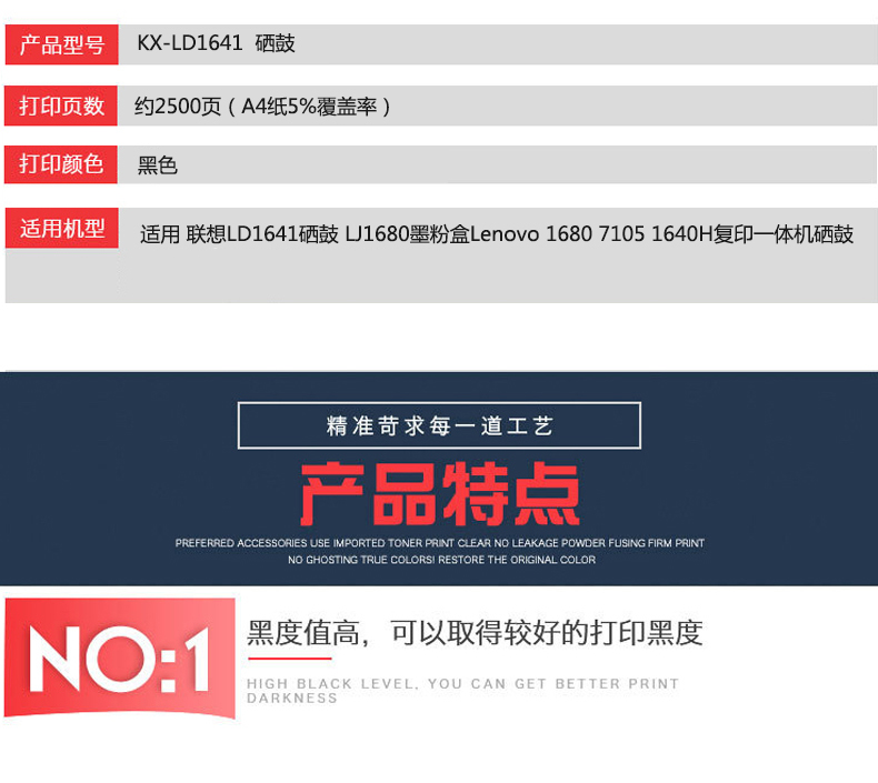 凱欣KX-LD1641 適用 聯(lián)想LD1641硒鼓 LJ1680墨粉盒Lenovo 1680 7105 1640H復印一體機硒鼓 碳粉盒 M7105黑白激光打印機墨盒 全國統(tǒng)一價:295元