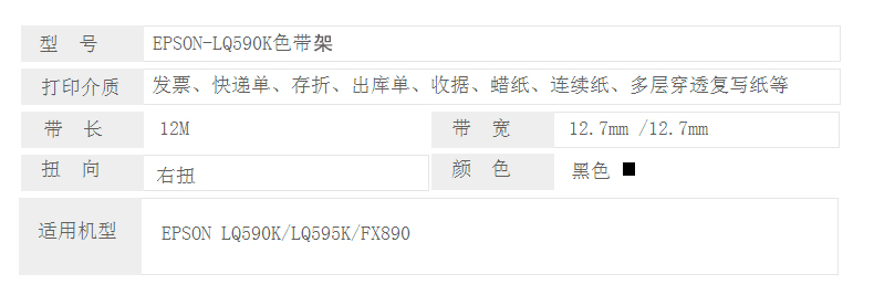 凱欣 KX-LQ590K 適用愛普生EPSON FX890 LQ590K LQ590KII LQ595K S015337 C13S015590打印機(jī)色帶架含芯 全國(guó)統(tǒng)一價(jià):33元