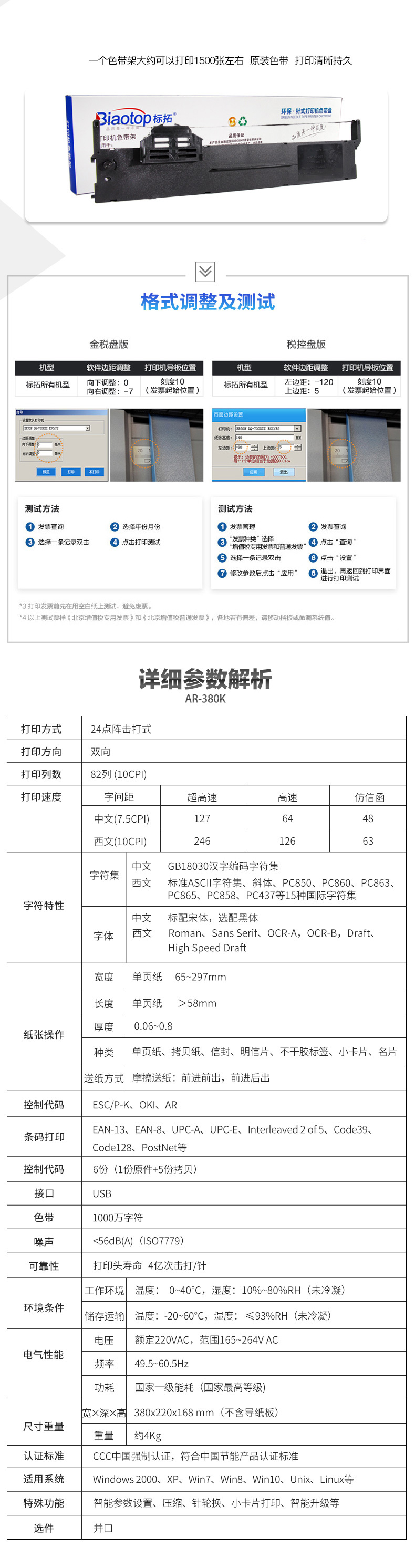 標(biāo)拓(Biaotop)AR380K 針式打印機(jī) 全國(guó)統(tǒng)一價(jià):899元