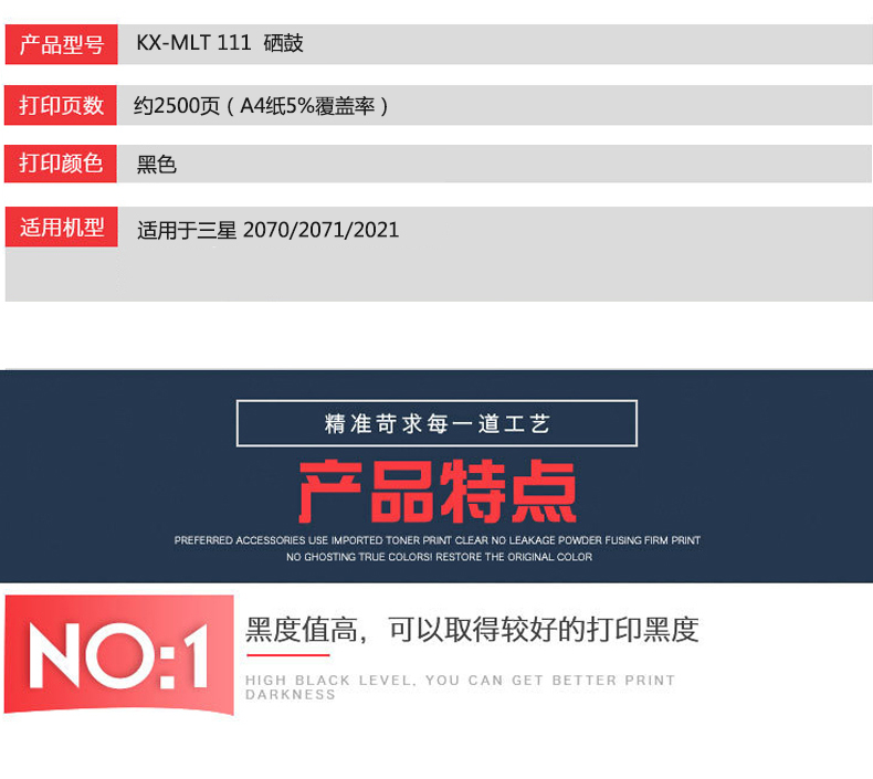 凱欣標(biāo)準(zhǔn)版 KX-MLT111粉盒 適用MLT-D111S M2070 M2021 M2022 M2020碳粉墨盒M2021W M2020W 全國統(tǒng)一價(jià):146元